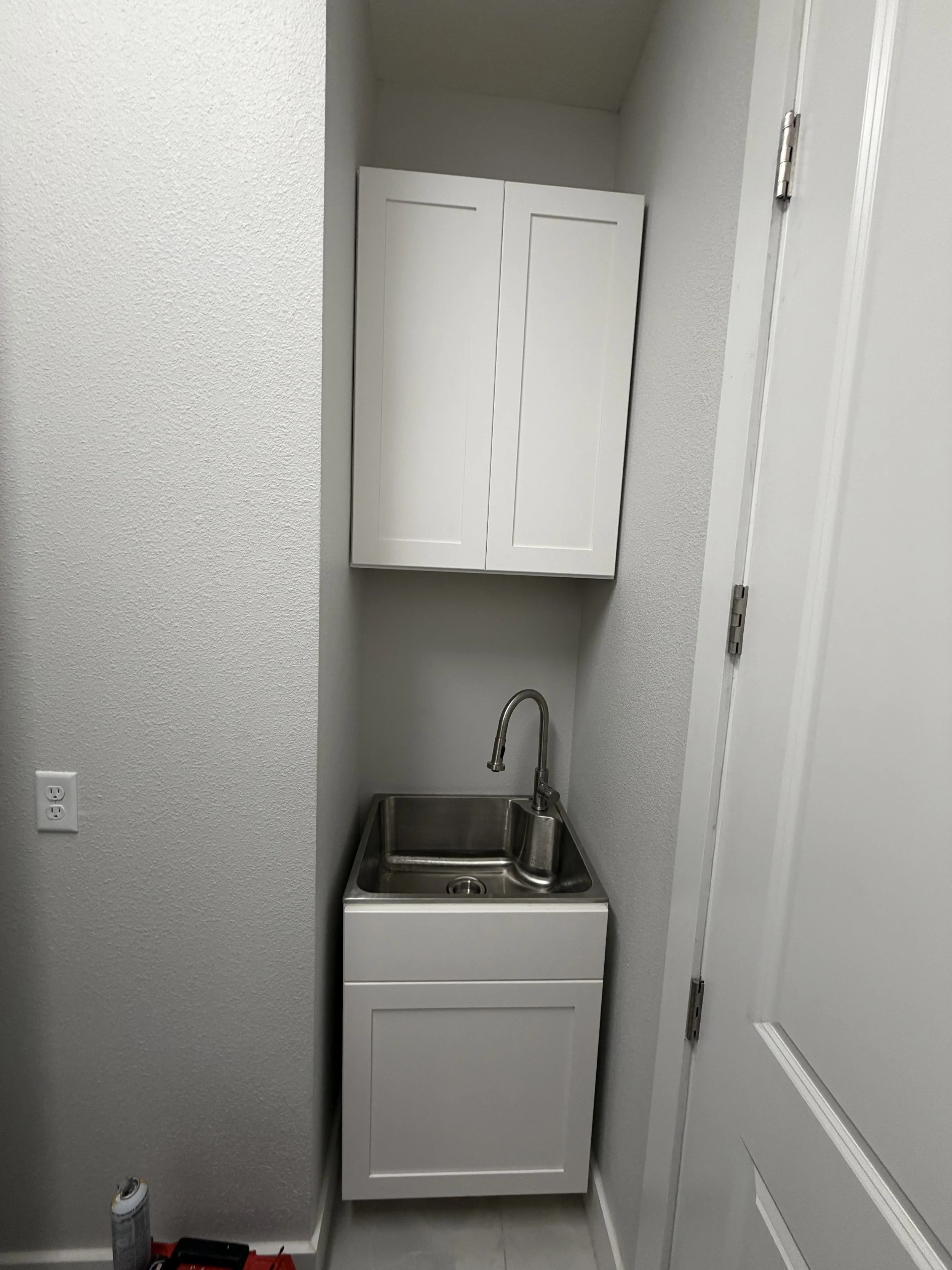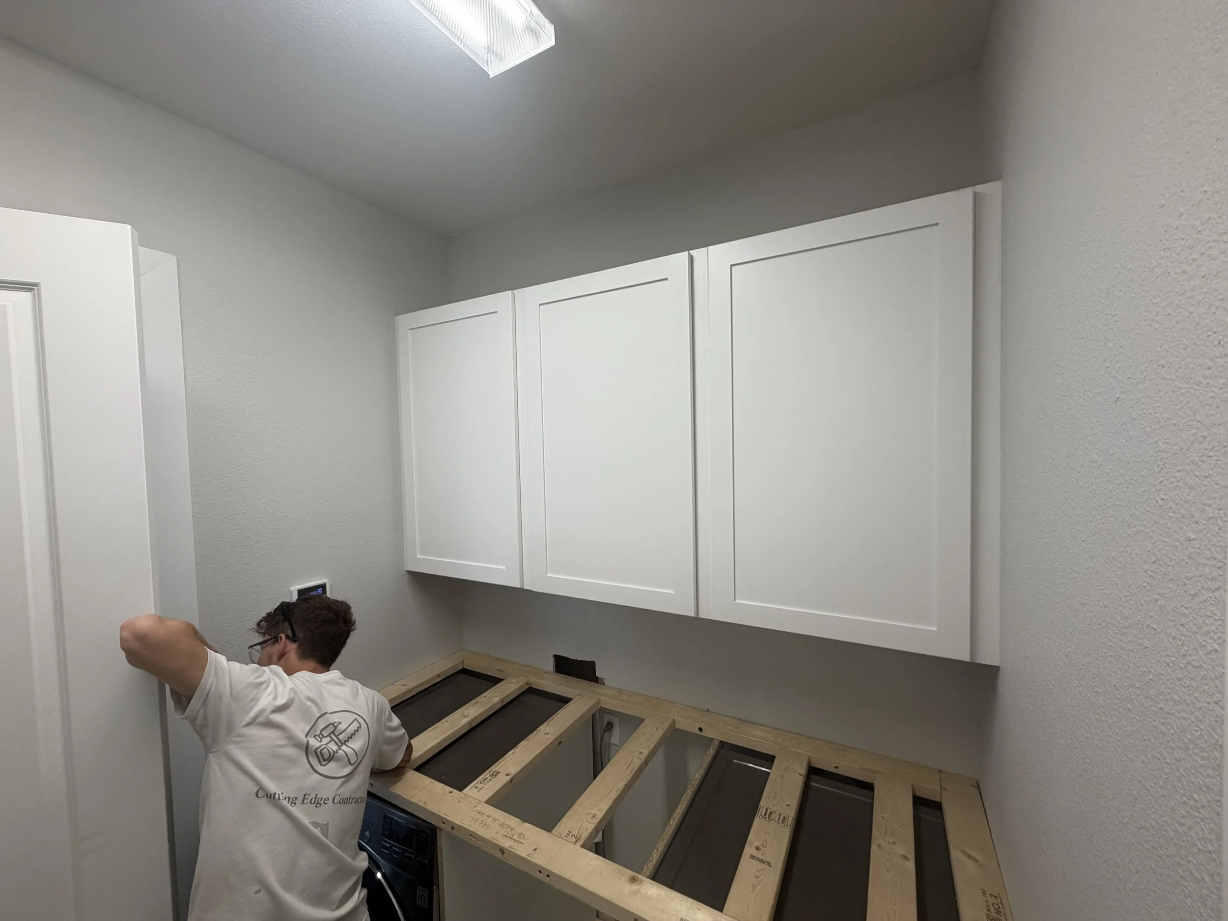 This beautiful laundry room transformation in Bradenton combines luxury and functionality. We installed elegant 42-inch wall cabinets that provide ample storage space, keeping everything organized and within reach. The sleek granite countertop adds a touch of sophistication while offering a durable, easy-to-clean workspace. Designed with both style and practicality in mind, this remodel elevates everyday laundry tasks into a truly enjoyable experience.