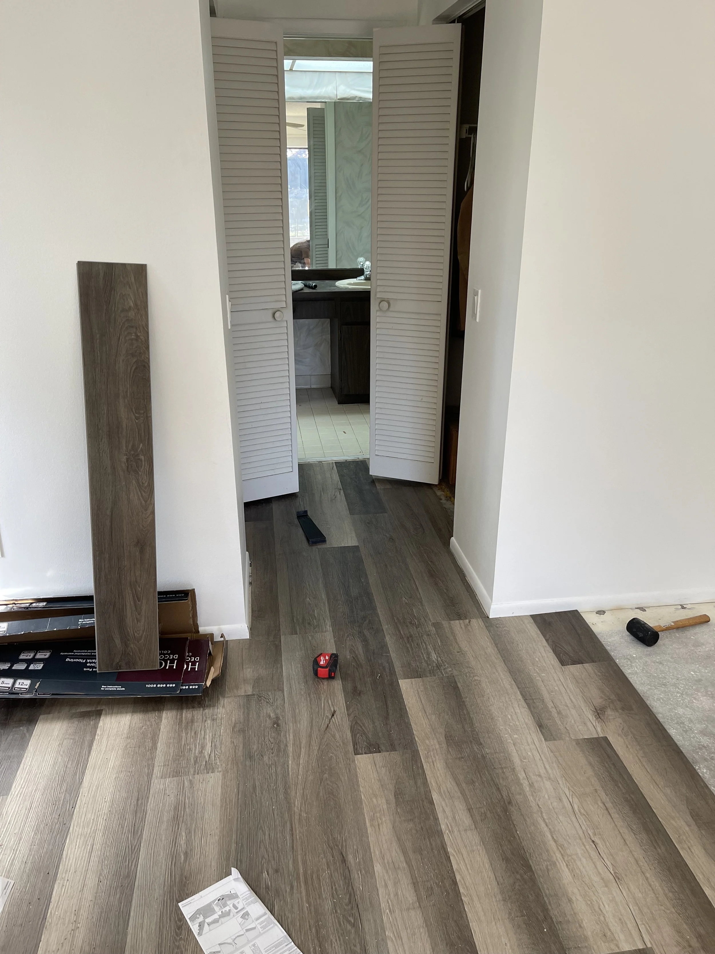 This project features beautifully installed luxury vinyl plank (LVP) flooring that brings warmth, durability, and style to the home. The rich texture and natural look of the LVP perfectly complement any design, while its strength and easy maintenance make it a practical choice for everyday living. Our expert installation ensures seamless transitions and a flawless finish, adding both beauty and value to the space.