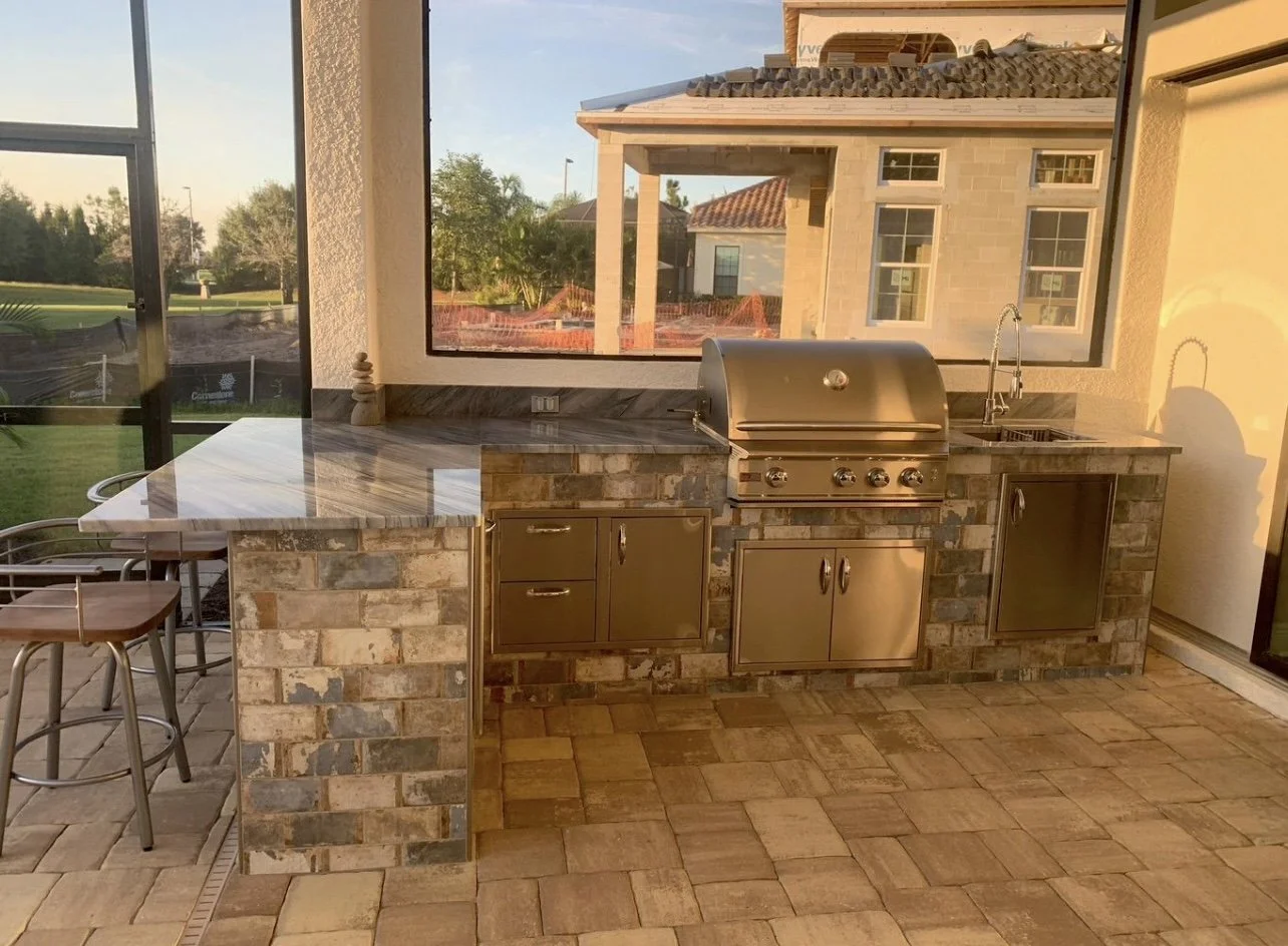 This stunning outdoor kitchen combines beauty, functionality, and durability for the ultimate outdoor living experience. Featuring elegant stacked stone finishes and high-end stainless steel appliances, the space is designed for both everyday enjoyment and effortless entertaining. An outdoor kitchen extends your living space, adds incredible value to your home, and creates a perfect gathering spot for family and friends. With quality craftsmanship and premium materials built to withstand the elements, this outdoor kitchen delivers luxury, convenience, and lasting style — turning any backyard into a true oasis.